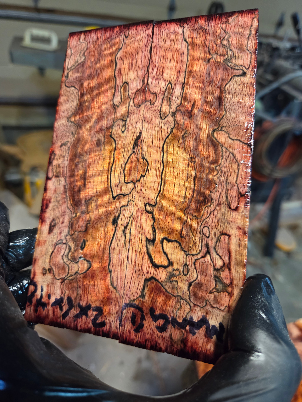mango spalt and curly red dyed and stabilized