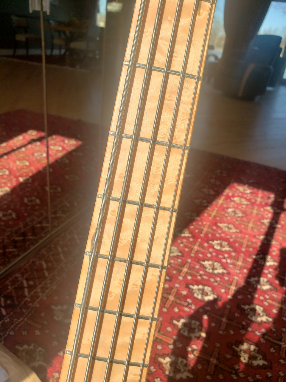 - Divinity Oracle 5 string Koa and Birdseye maple bass guitar