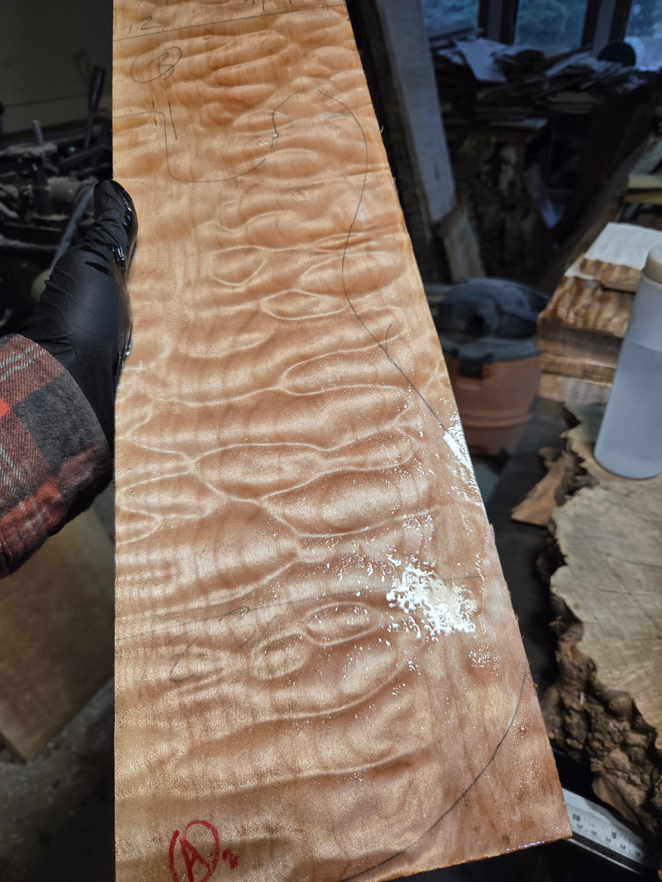 quilted maple Dry and ready to use, shown wet and dry